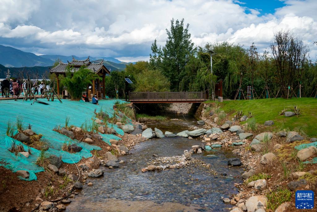 瀘沽湖畔三家村一處經過治理的入湖河道(9月25日攝)。 瀘沽湖位于川滇交界處,是川滇兩省共有的跨省湖泊,湖水水質穩定保持在國家Ⅰ類水標準。近年來,為保護好瀘沽湖生態環境,云南省麗江市寧蒗彝族自治縣大力實施80米生態紅線內民居客棧退出拆遷、湖濱生態帶建設、入湖河道治理等舉措,推動保護治理向好發展。 新華社記者 陳欣波 攝