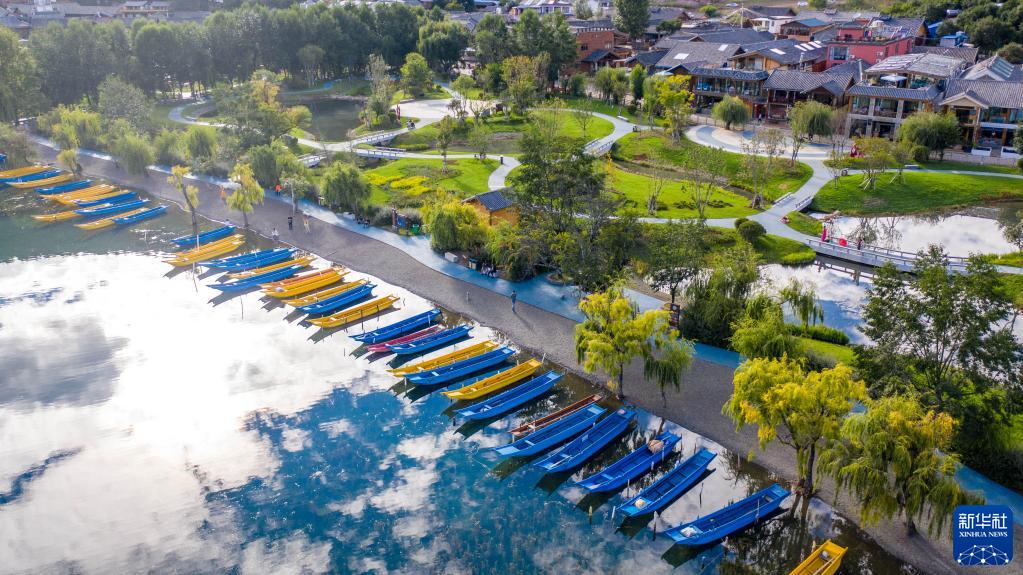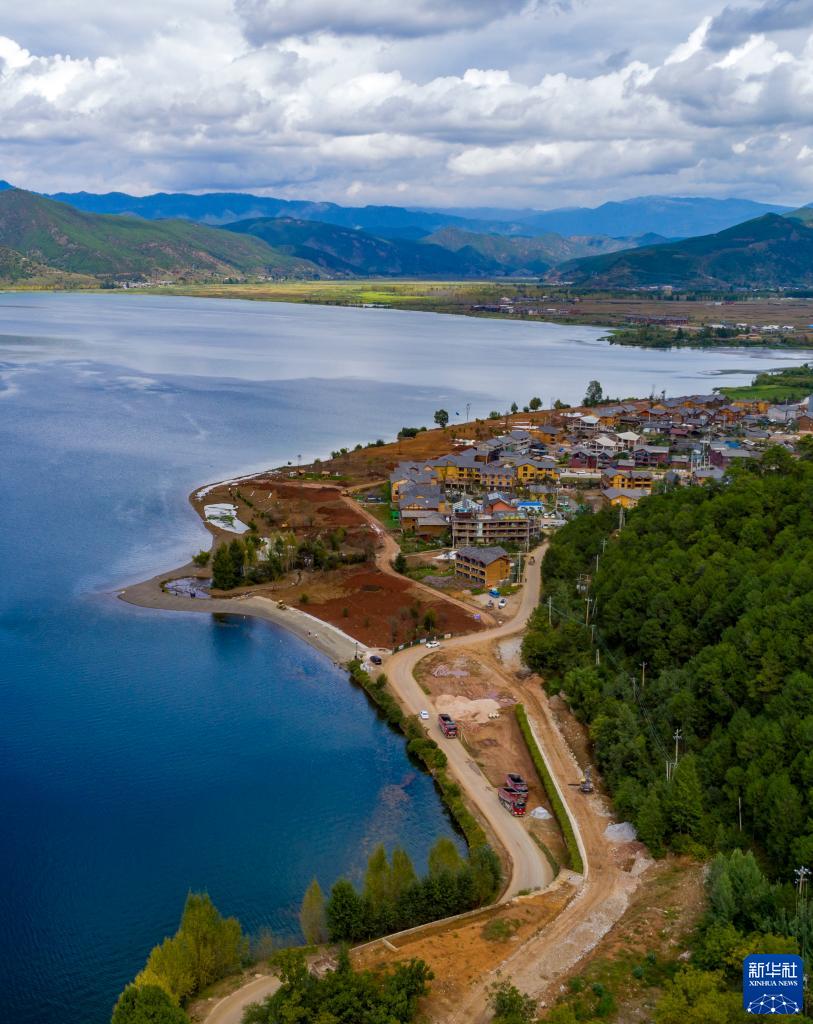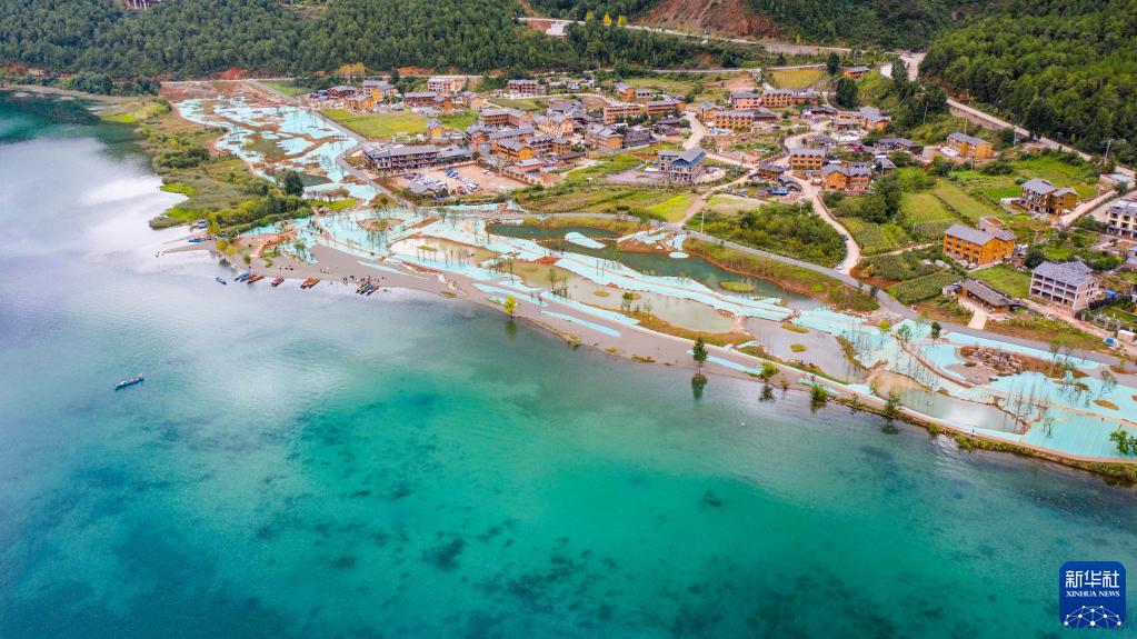 寧蒗縣永寧鎮三家村湖濱生態帶建設及濕地修復項目(無人機照片,9月24日攝)。 瀘沽湖位于川滇交界處,是川滇兩省共有的跨省湖泊,湖水水質穩定保持在國家Ⅰ類水標準。近年來,為保護好瀘沽湖生態環境,云南省麗江市寧蒗彝族自治縣大力實施80米生態紅線內民居客棧退出拆遷、湖濱生態帶建設、入湖河道治理等舉措,推動保護治理向好發展。 新華社記者 胡超 攝