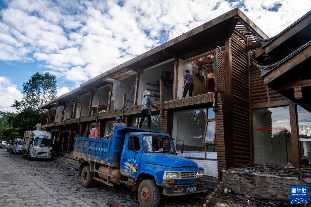 9月24日,在寧蒗縣永寧鎮里格村,工人在拆除80米生態紅線內的民居客棧。 瀘沽湖位于川滇交界處,是川滇兩省共有的跨省湖泊,湖水水質穩定保持在國家Ⅰ類水標準。近年來,為保護好瀘沽湖生態環境,云南省麗江市寧蒗彝族自治縣大力實施80米生態紅線內民居客棧退出拆遷、湖濱生態帶建設、入湖河道治理等舉措,推動保護治理向好發展。 新華社記者 胡超 攝