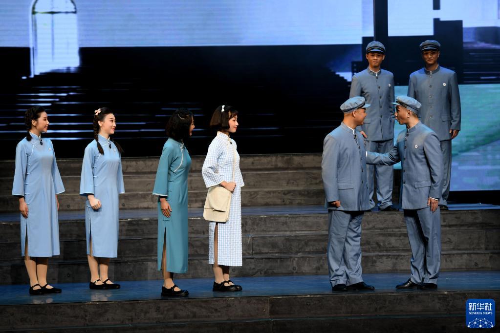 9月26日,在第九屆中國(安慶)黃梅戲藝術節開幕式上,黃梅戲演員演出《不朽的驕楊》。