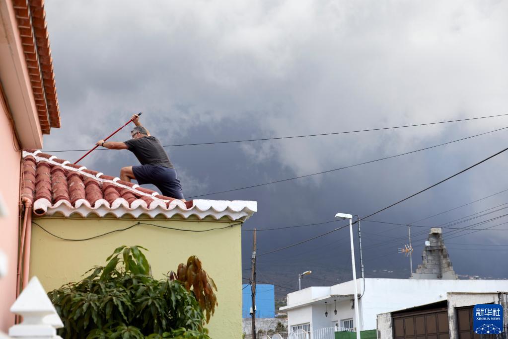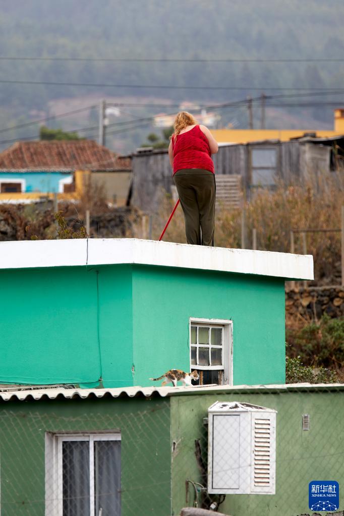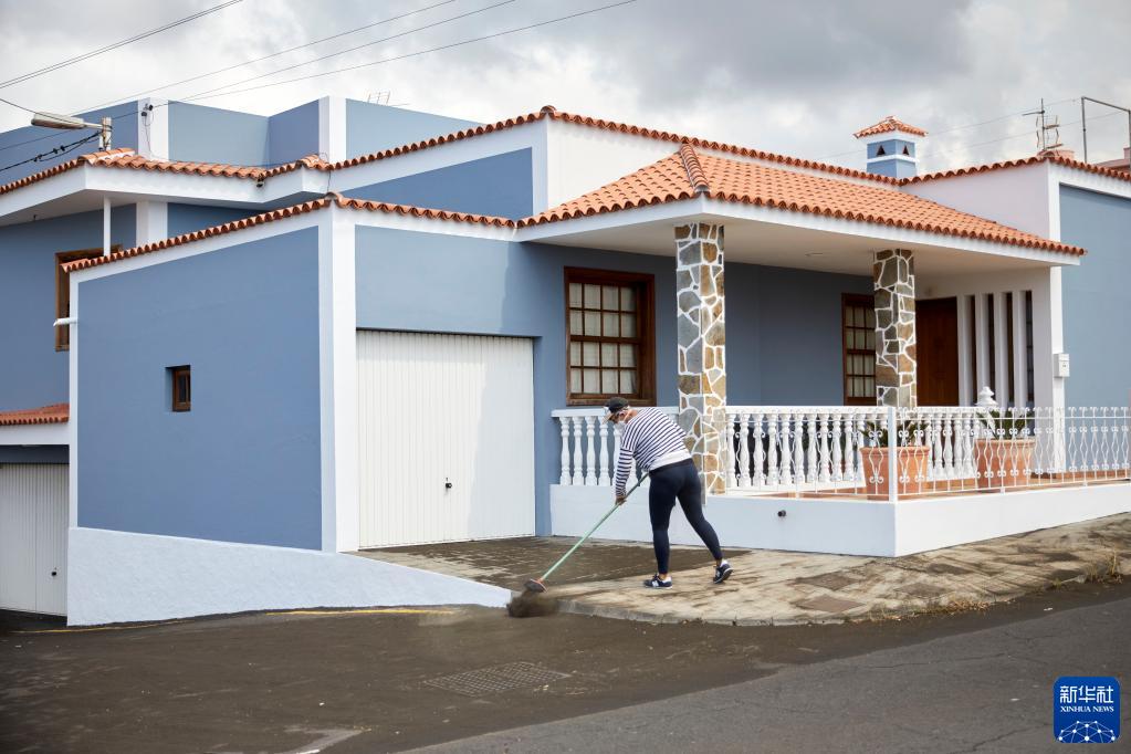 9月24日,一名居民在西班牙拉帕爾馬島清理火山灰。新華社記者 孟鼎博 攝