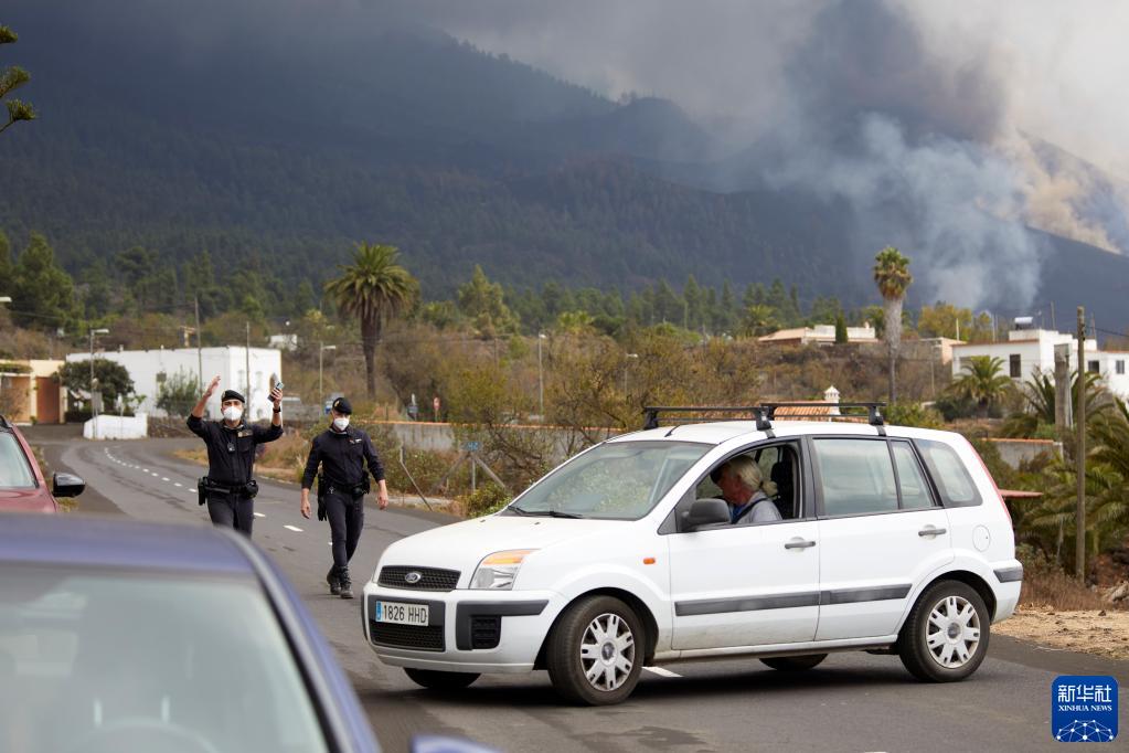 9月24日,警察在西班牙拉帕爾馬島老昆布雷火山附近封鎖道路。新華社記者 孟鼎博 攝 |