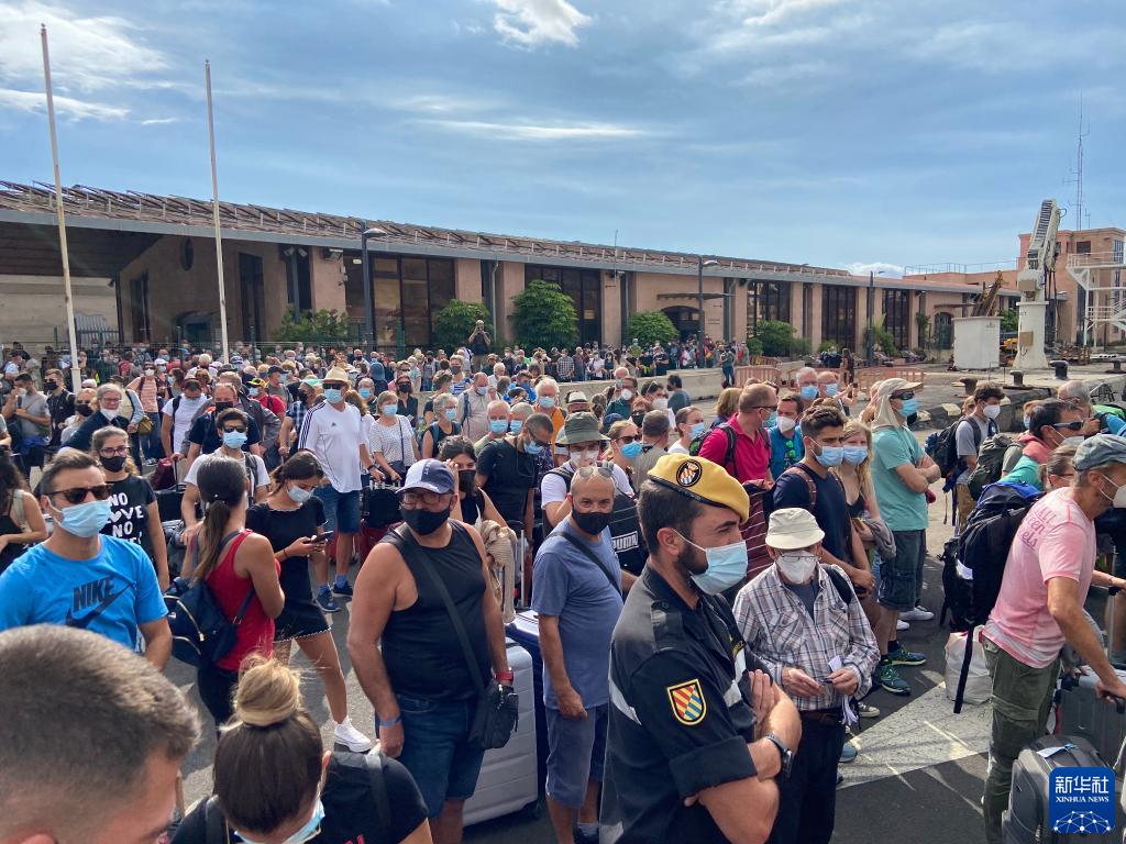 9月25日,大量民眾在西班牙拉帕爾馬島港口等待離島。新華社記者 孟鼎博 攝