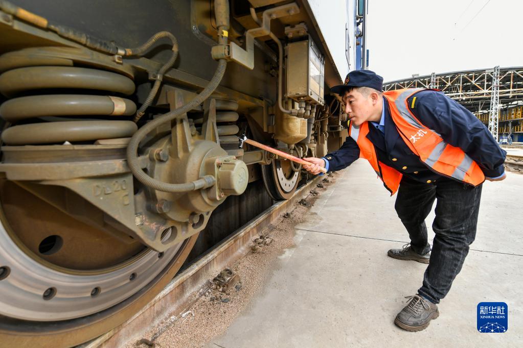 9月28日,李國慶在檢查即將值乘的列車。新華社記者 曹陽 攝