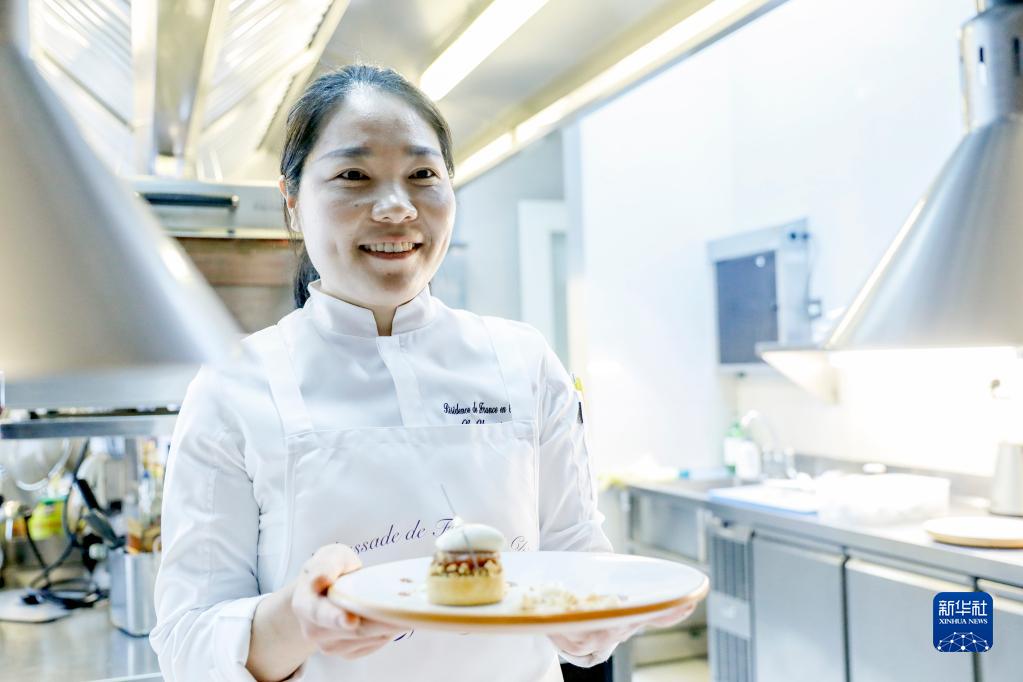 10月8日,甜點師現場展示制作完成的法式甜點。