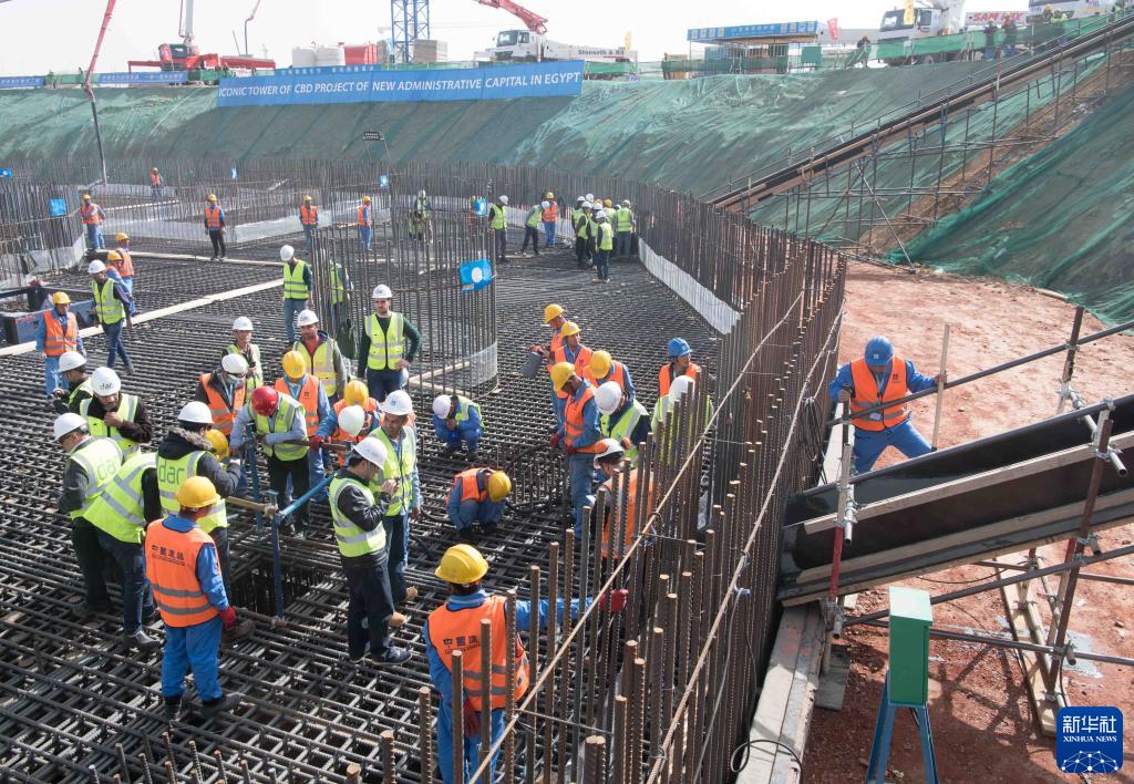這張2019年2月25日的資料照片顯示的是工人在埃及新首都中央商務區項目建設現場工作。