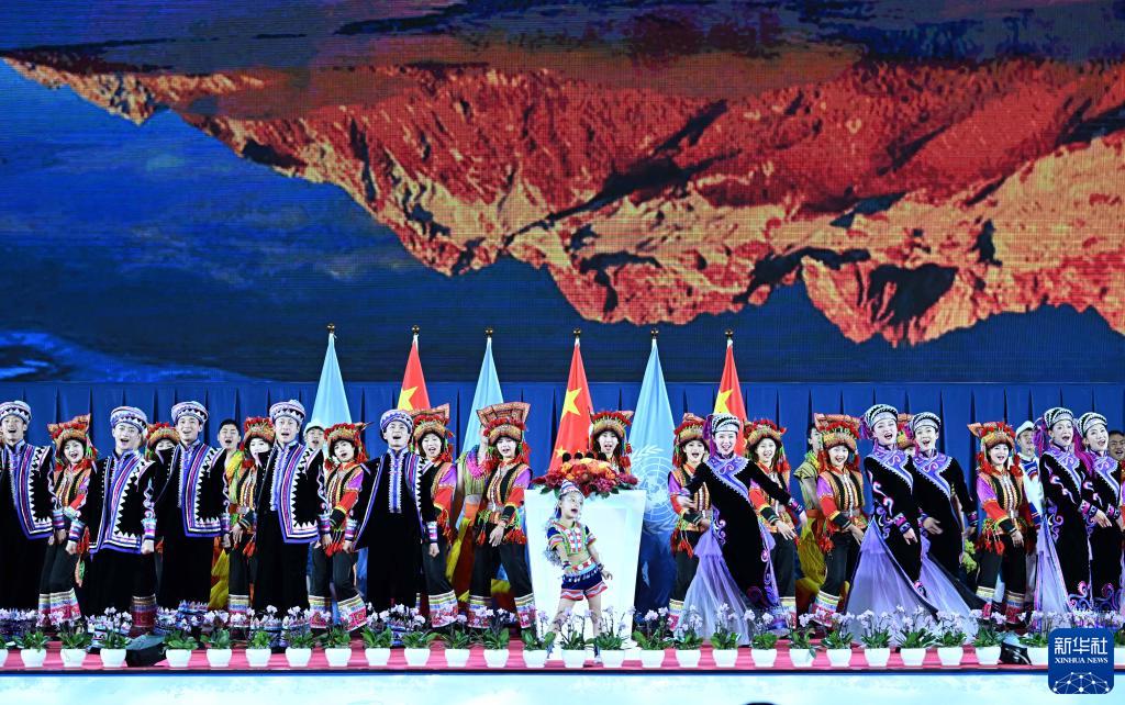 10月11日,《生物多樣性公約》第十五次締約方大會在云南昆明開幕。這是開幕式上的云南民族特色演出。