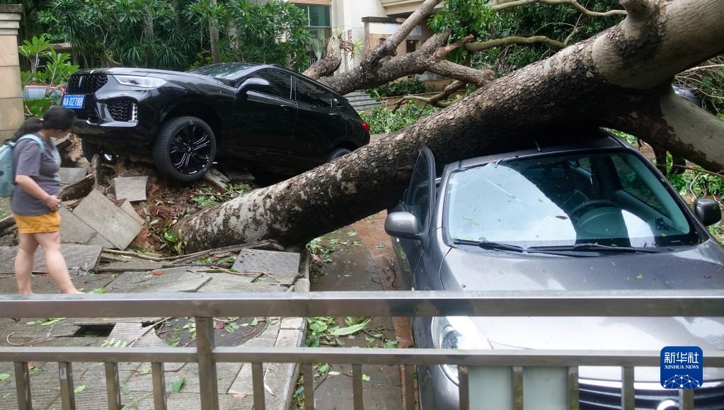 10月13日,在海口世貿雅苑小區,樹木被臺風“圓規”刮倒砸到小汽車。 記者從海南省氣象局獲悉,今年第18號臺風“圓規”10月13日15時30分在海南省瓊海市博鰲鎮沿海登陸,登陸時最大風力12級(33米/秒)。“圓規”登陸后,強度逐漸減弱,將先后穿過萬寧、陵水、瓊中、保亭、五指山等市縣,于13日下半夜移入北部灣,然后趨向越南北部。 新華社記者 楊冠宇 攝