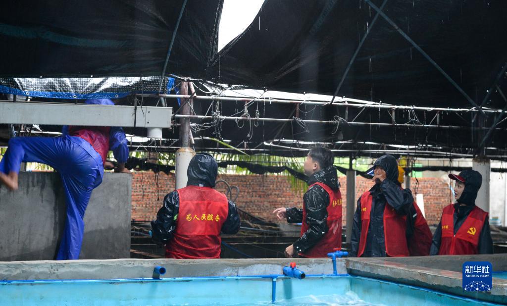 10月13日,萬寧市山根鎮排溪村的黨員志愿者對養殖場進行防風加固。 記者從海南省氣象局獲悉,今年第18號臺風“圓規”10月13日15時30分在海南省瓊海市博鰲鎮沿海登陸,登陸時最大風力12級(33米/秒)。“圓規”登陸后,強度逐漸減弱,將先后穿過萬寧、陵水、瓊中、保亭、五指山等市縣,于13日下半夜移入北部灣,然后趨向越南北部。 新華社記者 周佳誼 攝