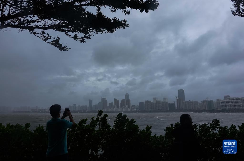 10月13日,市民在海口市保利中央海岸拍攝臺風“圓規”登陸情況。 記者從海南省氣象局獲悉,今年第18號臺風“圓規”10月13日15時30分在海南省瓊海市博鰲鎮沿海登陸,登陸時最大風力12級(33米/秒)。“圓規”登陸后,強度逐漸減弱,將先后穿過萬寧、陵水、瓊中、保亭、五指山等市縣,于13日下半夜移入北部灣,然后趨向越南北部。 新華社記者 楊冠宇 攝