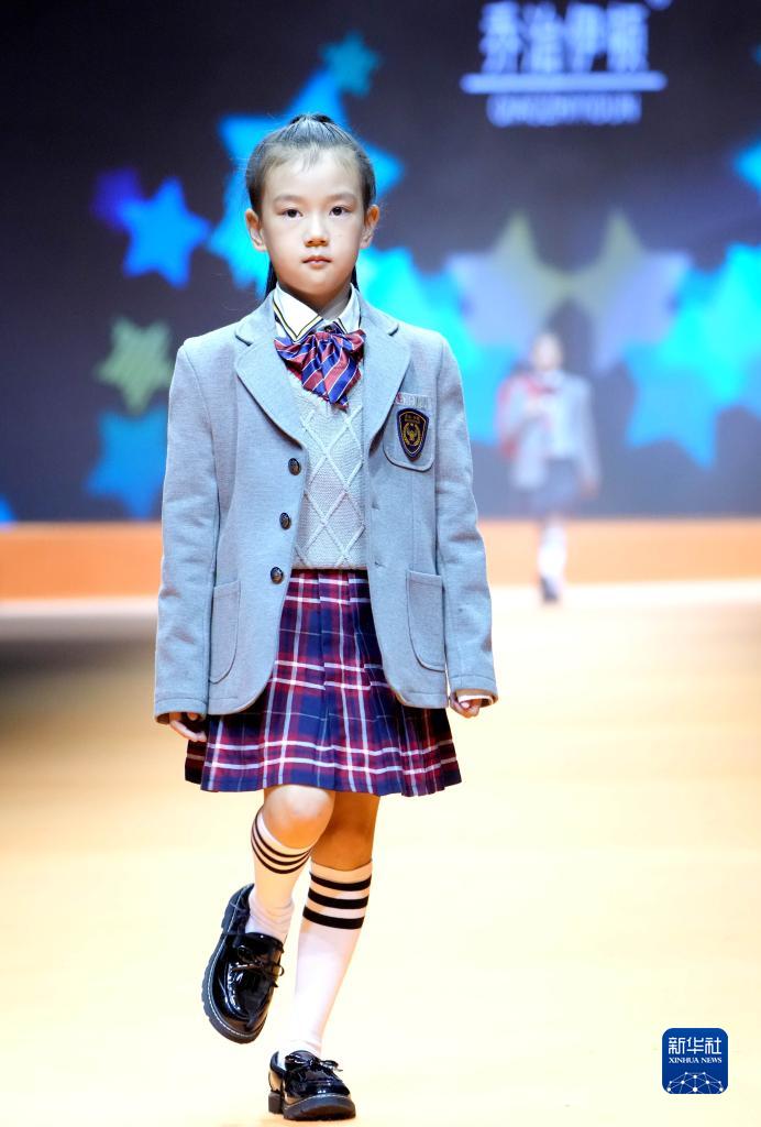 10月18日,小模特在展示重慶當地服裝品牌的校服系列服裝。 當日,2021中國重慶國際時尚周在重慶市渝北區T23時裝小鎮落下帷幕。在閉幕盛典上,中國金頂獎獲得者計文波、張義超和重慶籍時裝設計師以及重慶當地服裝品牌等聯合舉辦了一場主題為“紅星耀中國·時尚共攜行”的閉幕秀。新華社記者 陳建力 攝