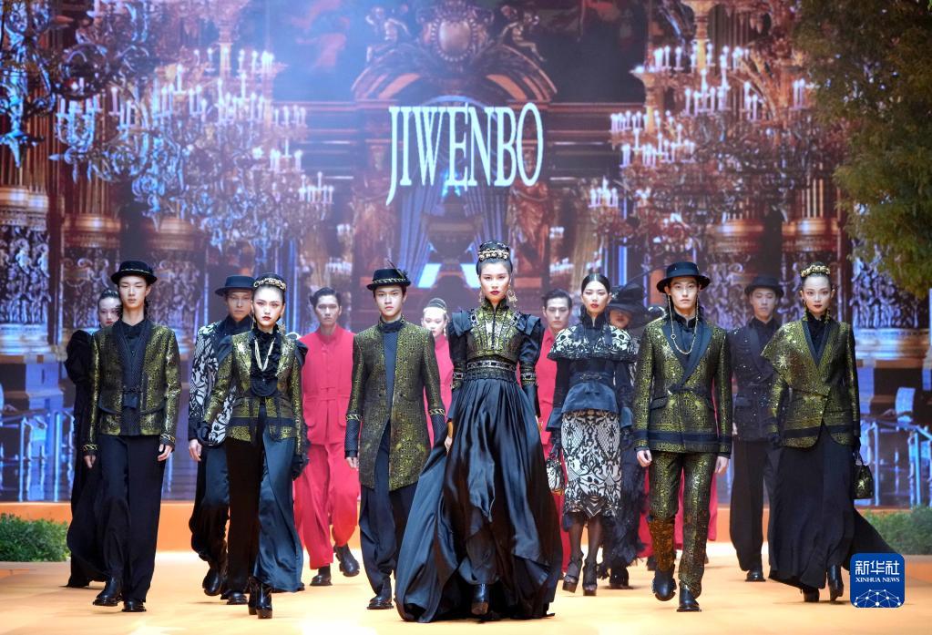 10月18日,模特在展示中國知名設計師、金頂獎獲得者計文波設計的時裝。 當日,2021中國重慶國際時尚周在重慶市渝北區T23時裝小鎮落下帷幕。在閉幕盛典上,中國金頂獎獲得者計文波、張義超和重慶籍時裝設計師以及重慶當地服裝品牌等聯合舉辦了一場主題為“紅星耀中國·時尚共攜行”的閉幕秀。新華社記者 陳建力 攝