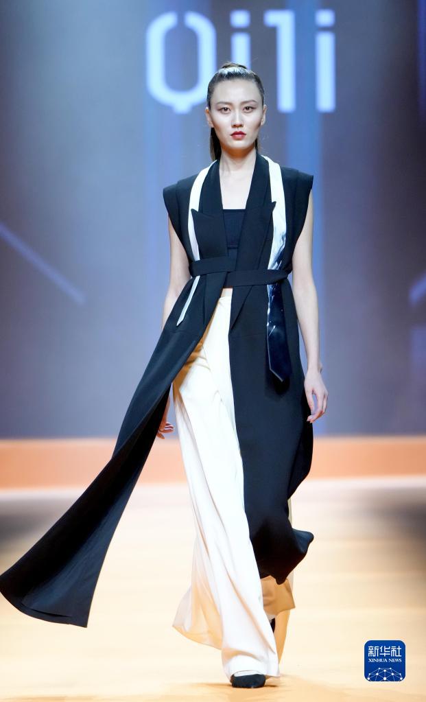 10月18日,模特在展示重慶當地服裝品牌的服裝。 當日,2021中國重慶國際時尚周在重慶市渝北區T23時裝小鎮落下帷幕。在閉幕盛典上,中國金頂獎獲得者計文波、張義超和重慶籍時裝設計師以及重慶當地服裝品牌等聯合舉辦了一場主題為“紅星耀中國·時尚共攜行”的閉幕秀。新華社記者 陳建力 攝