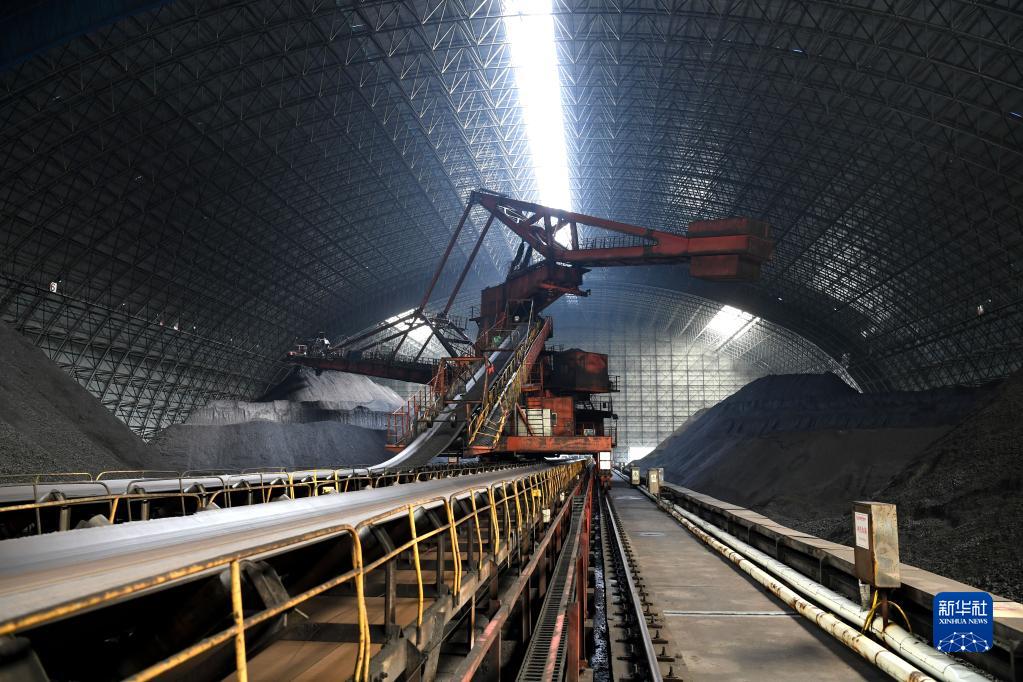 10月20日,在安徽省宿州市錢營孜煤礦,電煤通過傳送帶入倉等待外運。新華社記者劉軍喜攝