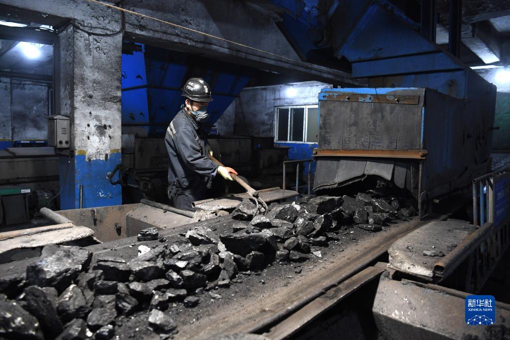 10月20日,安徽省宿州市錢營孜煤礦工人在篩分電煤。新華社記者韓旭攝