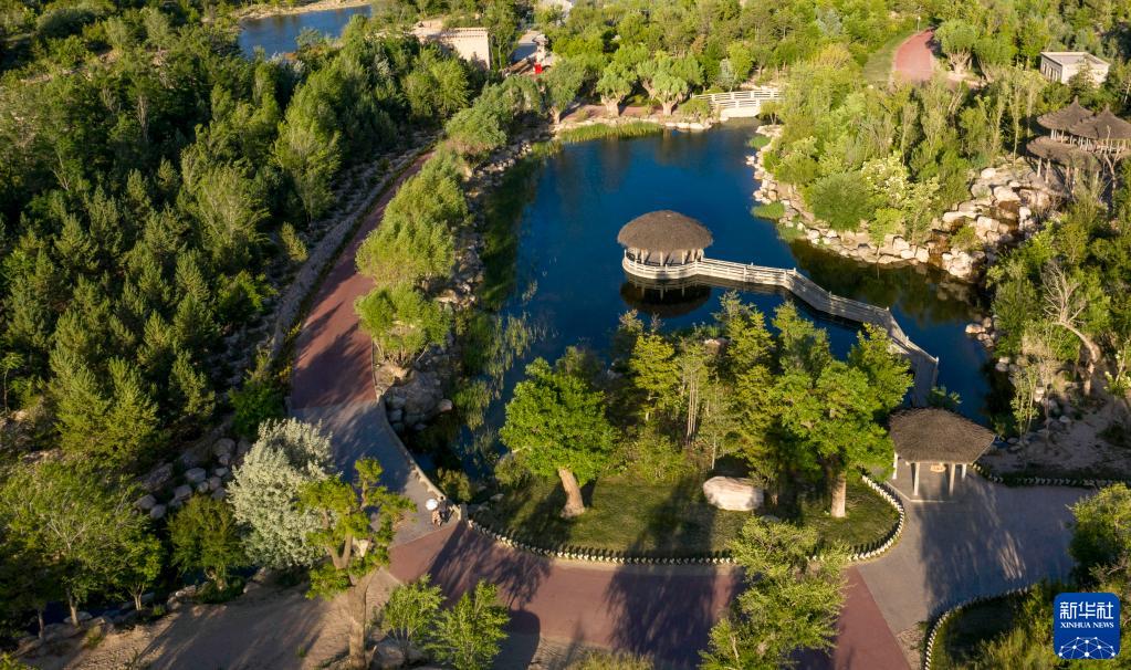 坐落在寧夏銀川市賀蘭山腳下的賀蘭山運動休閑公園(5月27日攝,無人機照片)。這里曾是一片砂石采礦塌陷區。近年來,當地通過植被景觀再造、水系建設、現代管網鋪建等措施,重新利用廢石、廢坑及各類廢棄建筑材料,把塌陷區建成了一座免費開放的主題公園。 天上來水,到海不回。 千百年來,黃河,這條孕育了華夏文明的母親河,與民族命運緊緊相連。 “黃河寧,天下平”。今天,人民治理黃河事業進入歷史新境界,黃河正在譜寫演繹新時代新樂章。 從頂層設計到具體實施,從巍巍昆侖到滔滔渤海,一場新時代的“黃河大合唱”,已經奏響。 新華社記者 馮開華 攝