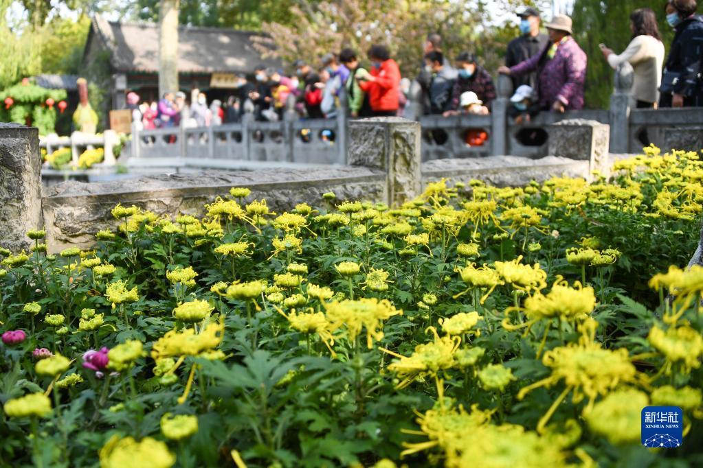 10月25日,游人在濟南趵突泉公園觀賞菊花展。