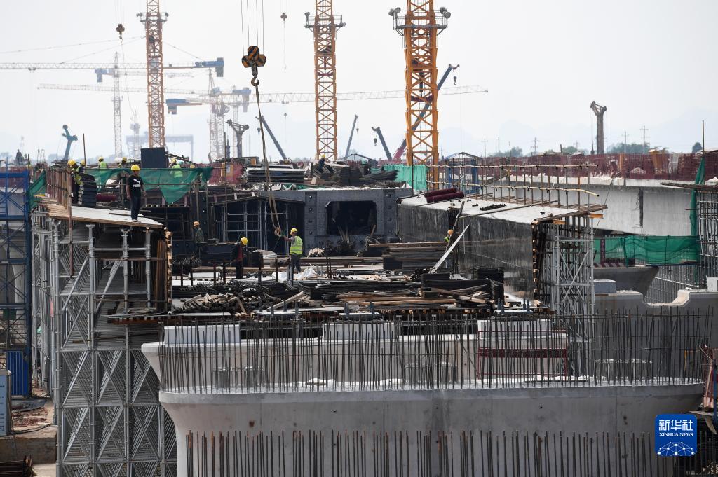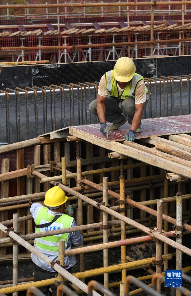 10月25日,在貴南高鐵廣西南寧北站,中鐵上海工程局工人在施工中。 目前,貴南(貴陽至南寧)高鐵廣西南寧北站進入繁忙的施工建設階段。這座高鐵站地處南寧市武鳴區,站房面積30000平方米,定位為南寧市北部綜合交通樞紐。 貴南高鐵是我國“八縱八橫”高速鐵路主通道包頭至海口通道的重要組成部分,設計時速350公里。 新華社記者 陸波岸 攝