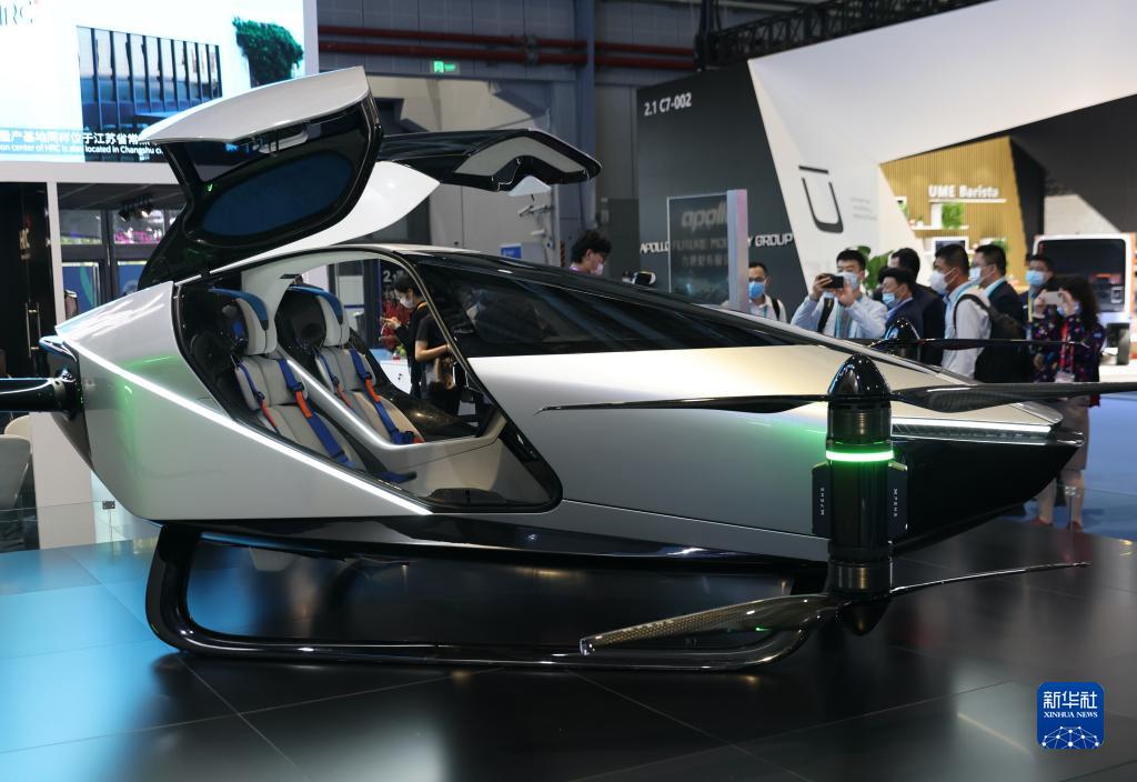 11月7日,人們在進博會汽車展區觀看小鵬飛行汽車。