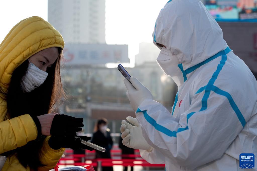 11月8日,在西寧市中心廣場核酸采樣點,工作人員為群眾掃碼登記。 11月8日9時開始,青海省西寧市主城區開展第二輪全員核酸檢測。據了解,西寧市主城區11月6日至7日進行第一輪全員核酸檢測,共采樣144.8萬人份,結果均為陰性。 新華社記者 吳剛 攝