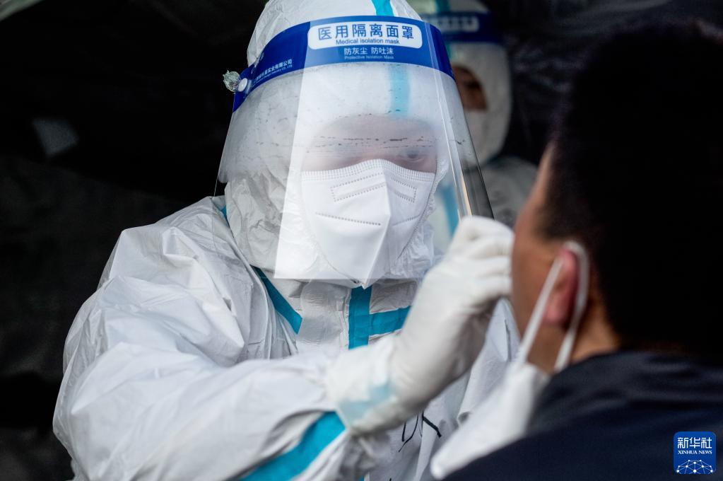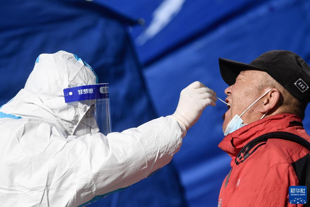 11月8日,在西寧市中心廣場核酸采樣點,醫護人員冒著嚴寒做核酸采樣。 11月8日9時開始,青海省西寧市主城區開展第二輪全員核酸檢測。據了解,西寧市主城區11月6日至7日進行第一輪全員核酸檢測,共采樣144.8萬人份,結果均為陰性。 新華社記者 吳剛 攝