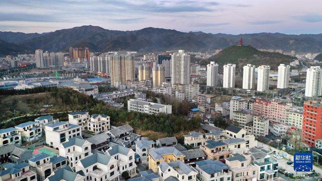 11月8日拍攝的商南縣城(無人機(jī)照片)。 陜西省商洛市商南縣是秦嶺深處的一個(gè)山區(qū)小縣,過去縣城發(fā)展相對(duì)落后,隨著城市建設(shè)快速推進(jìn),如今市容市貌有了很大提升,配以山川、河流、樹木等自然景觀,繪成一幅美麗畫卷。 新華社記者 陶明 攝