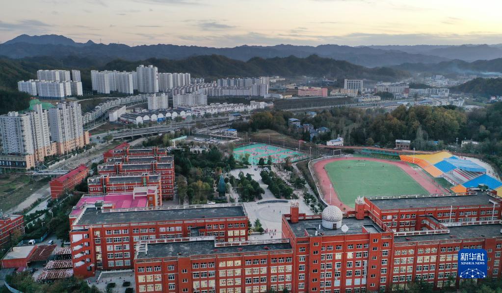 商南縣鹿城中學(xué)(11月8日攝,無人機(jī)照片)。 陜西省商洛市商南縣是秦嶺深處的一個(gè)山區(qū)小縣,過去縣城發(fā)展相對(duì)落后,隨著城市建設(shè)快速推進(jìn),如今市容市貌有了很大提升,配以山川、河流、樹木等自然景觀,繪成一幅美麗畫卷。 新華社記者 陶明 攝