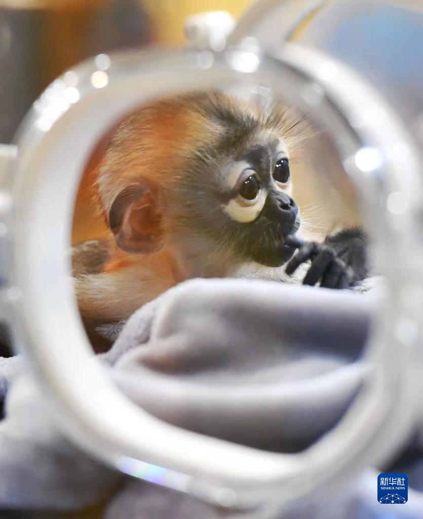 國內(nèi)首例人工育幼瀕危物種黑腿白臀葉猴亮相廣州