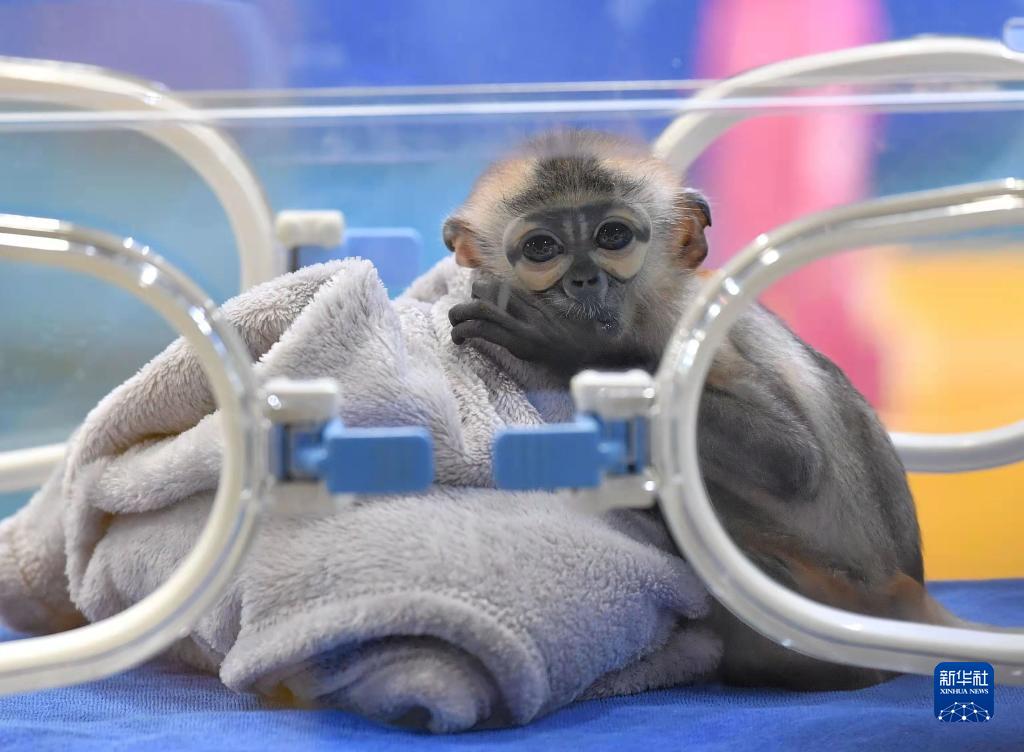 當日,國內首例人工繁育成功的黑腿白臀葉猴寶寶在廣州長隆靈長類研究中心與觀眾見面,黑腿白臀葉猴寶寶出生于今年7月。由于黑腿白臀葉猴幼崽存活率較低,國內相關研究和成功案例極少,為了保障猴寶寶成功存活,研究中心保育員借鑒了食性相近的川金絲猴育幼經驗,針對葉猴特殊的生理結構和消化方式,摸索出了一條白臀葉猴科學保育之路。