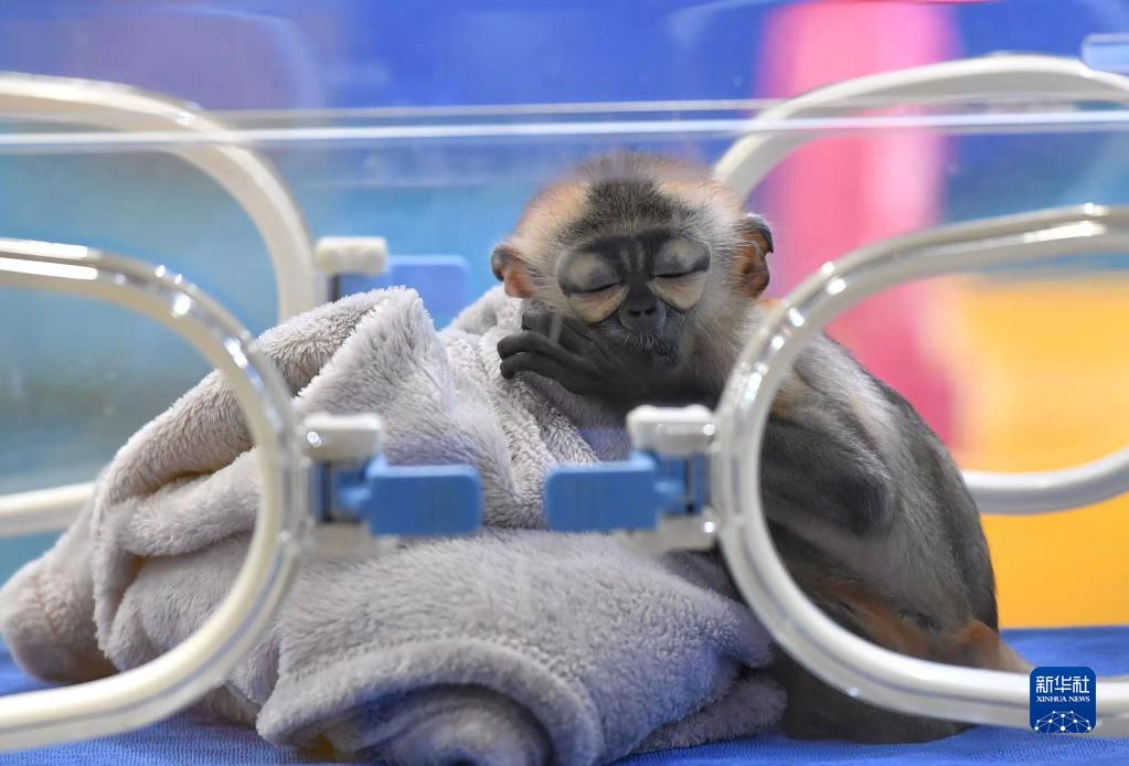 國內首例人工育幼瀕危物種黑腿白臀葉猴亮相廣州