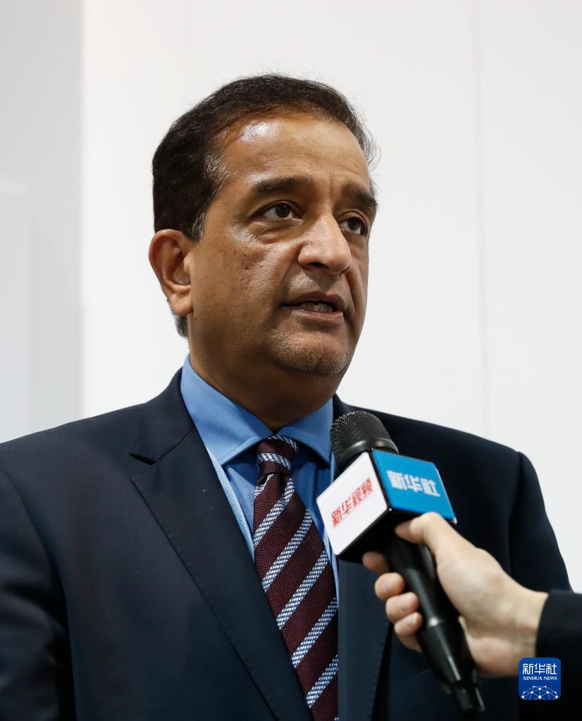11月9日,在英國格拉斯哥進行的《聯合國氣候變化框架公約》第二十六次締約方大會(COP26)期間,巴基斯坦氣候變化部長馬利克·阿明·阿斯拉姆接受新華社記者采訪。