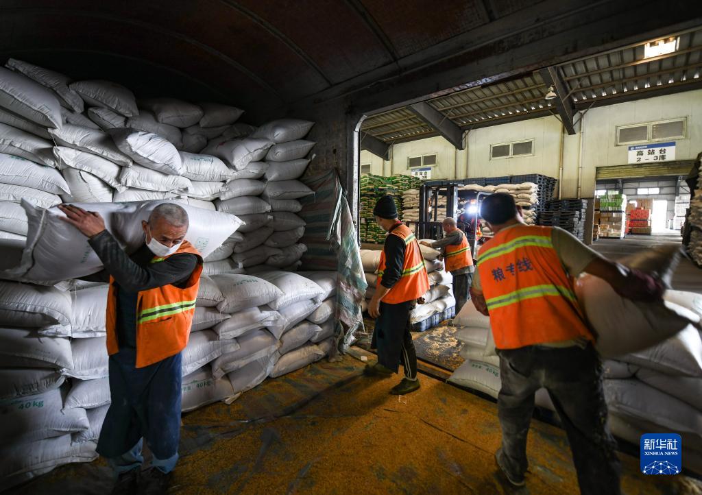 11月12日,在成都糧食集團青白江國家糧食儲備庫,工人卸下從外省運來的糧食。