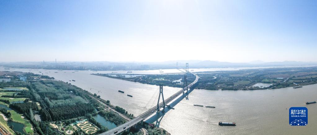 潤揚(yáng)長(zhǎng)江大橋沿江風(fēng)光(11月10日攝,無人機(jī)照片 )。