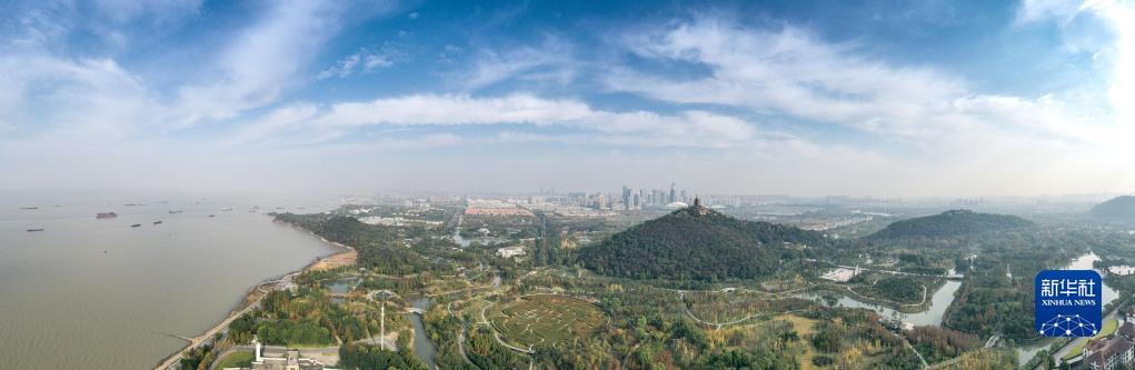 位于南通市的狼山國家森林公園沿江景色(11月13日攝,無人機(jī)照片)。