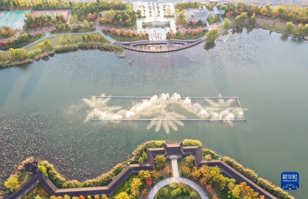 儀征市揚(yáng)子江公園景色(11月9日攝,無人機(jī)照片)。