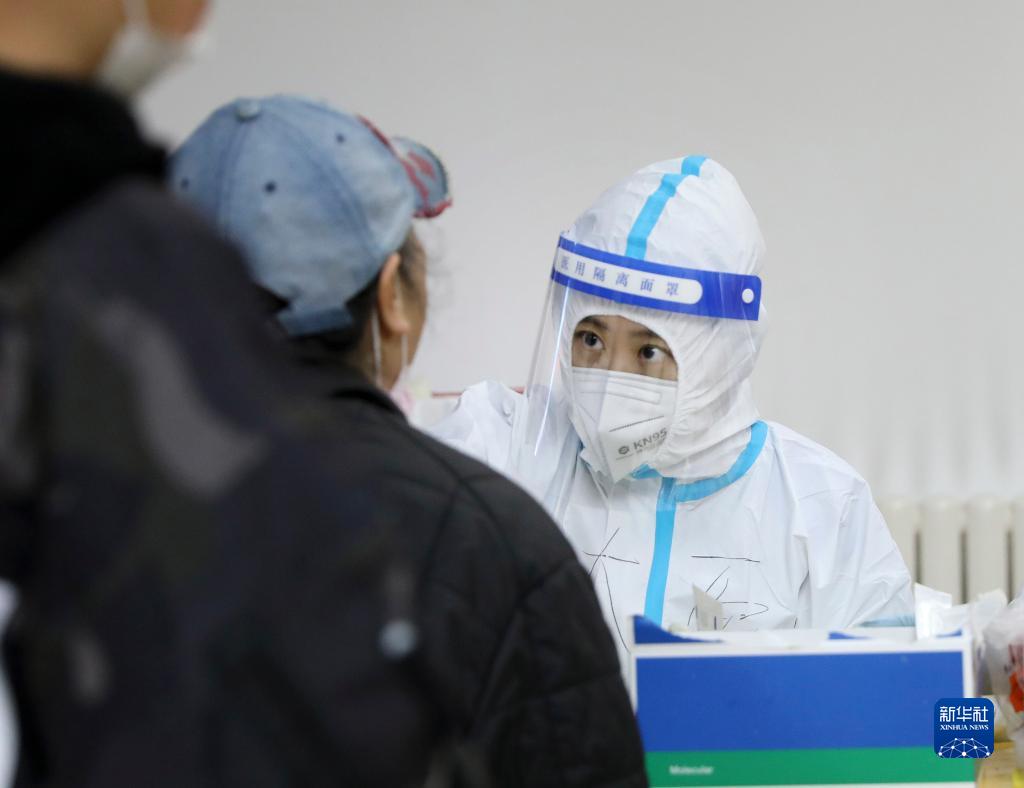 11月17日,醫護人員為大連市玉華社區居民進行核酸檢測采樣。