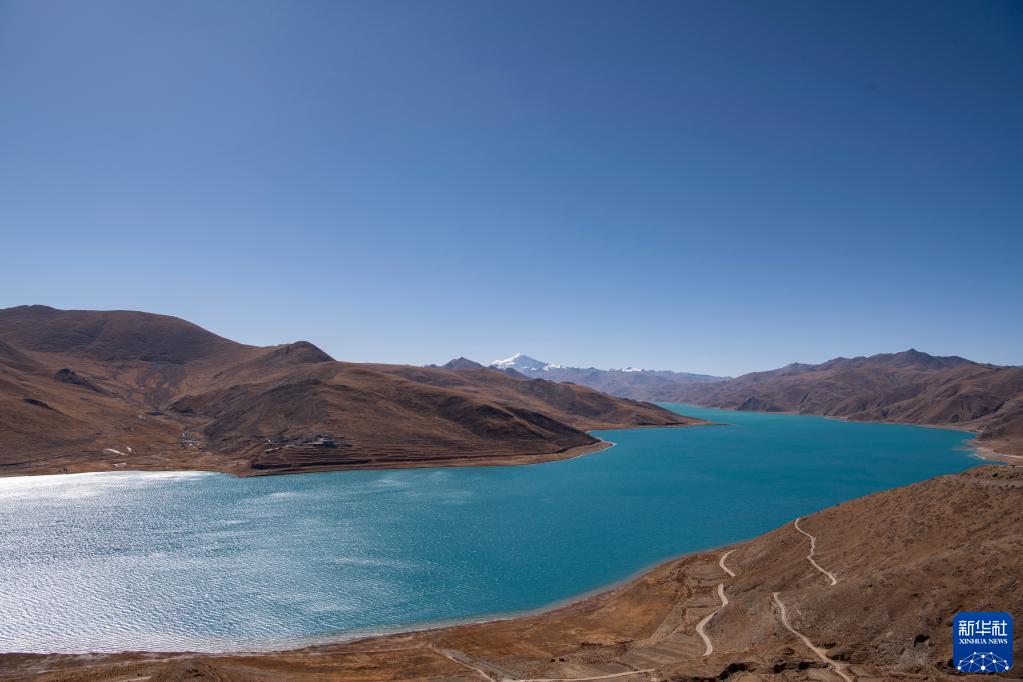 這是羊卓雍措(11月16日攝)。 羊卓雍措簡稱羊湖,大部分位于西藏山南市浪卡子縣境內,湖面海拔4400多米。近年來,羊卓雍措周邊生態環境持續向好,棲息繁衍的野生動物數量逐年增多。 新華社記者 孫非 攝