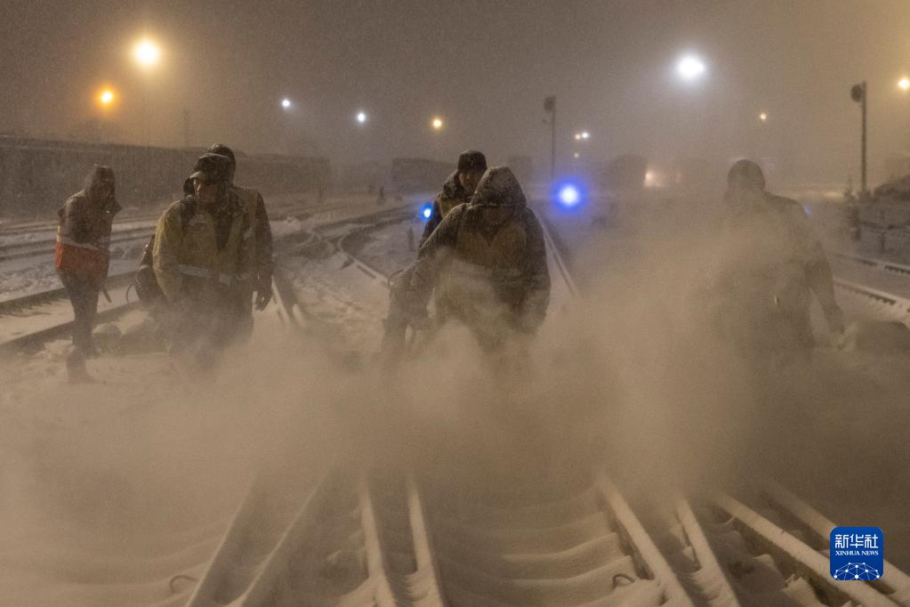11月22日凌晨,在雞西站西場,工作人員進行清雪作業。