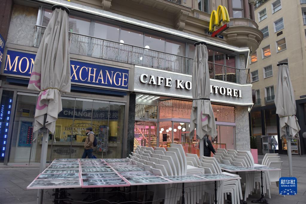 這是11月22日在奧地利首都維也納拍攝的一條商業(yè)步行街上關(guān)閉的咖啡館。