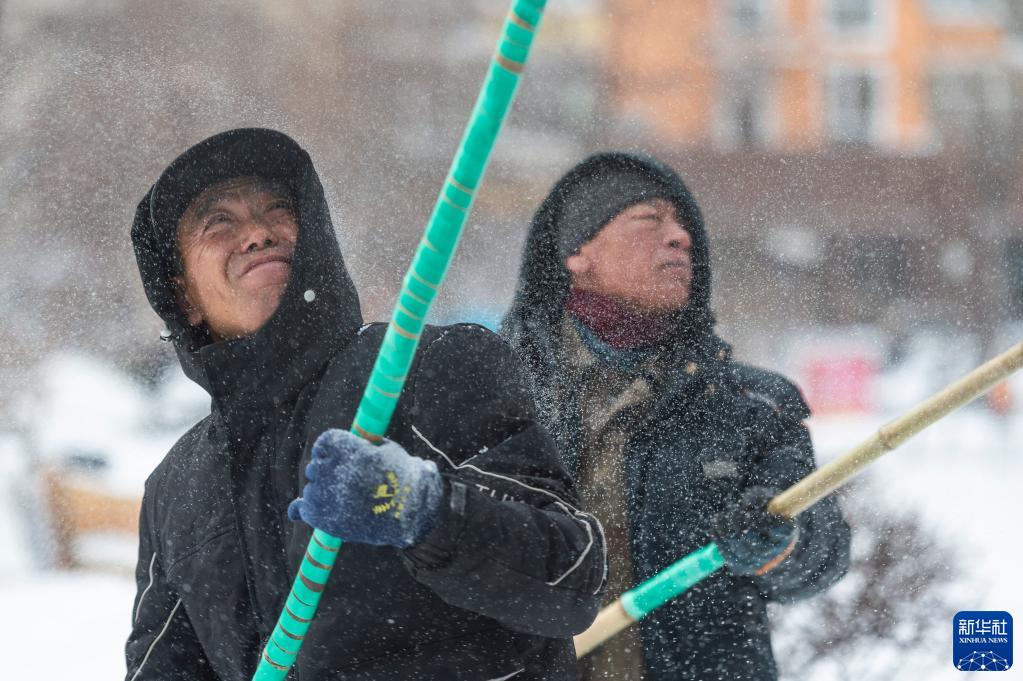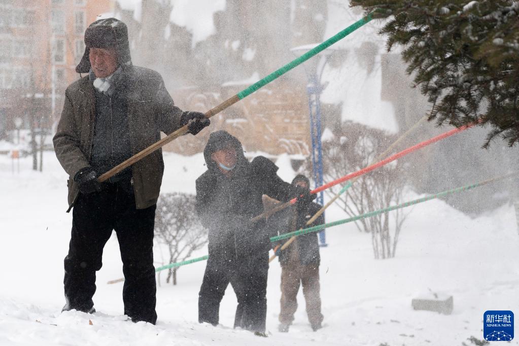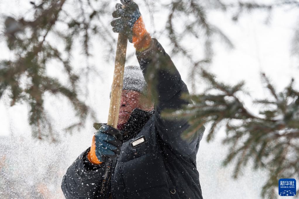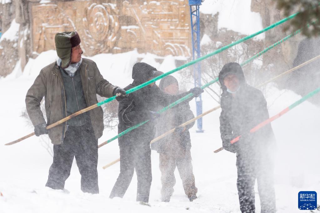 新華全媒+|風(fēng)雪中,他們揮舞6米長竿
