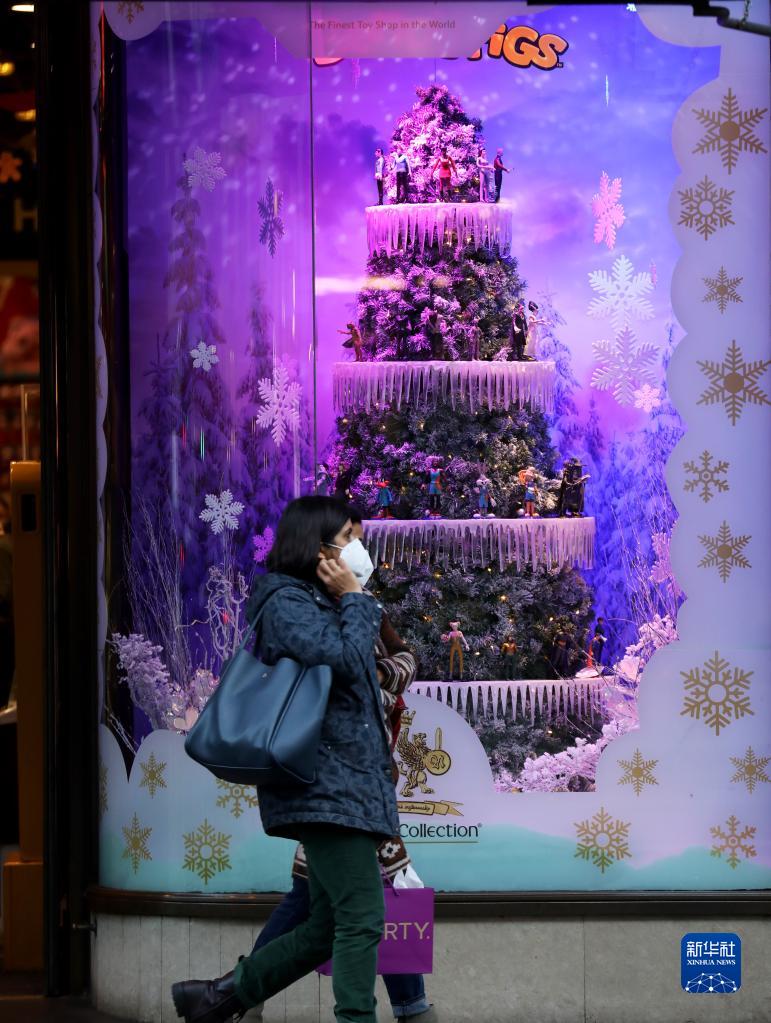 11月25日,一名女子在英國倫敦佩戴口罩出行。