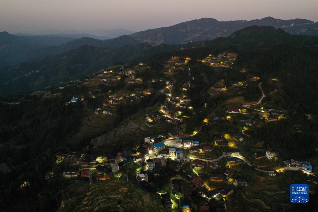 這是廣西融水苗族自治縣桿洞鄉(xiāng)黨鳩村夜景(無人機照片,11月26日攝)。