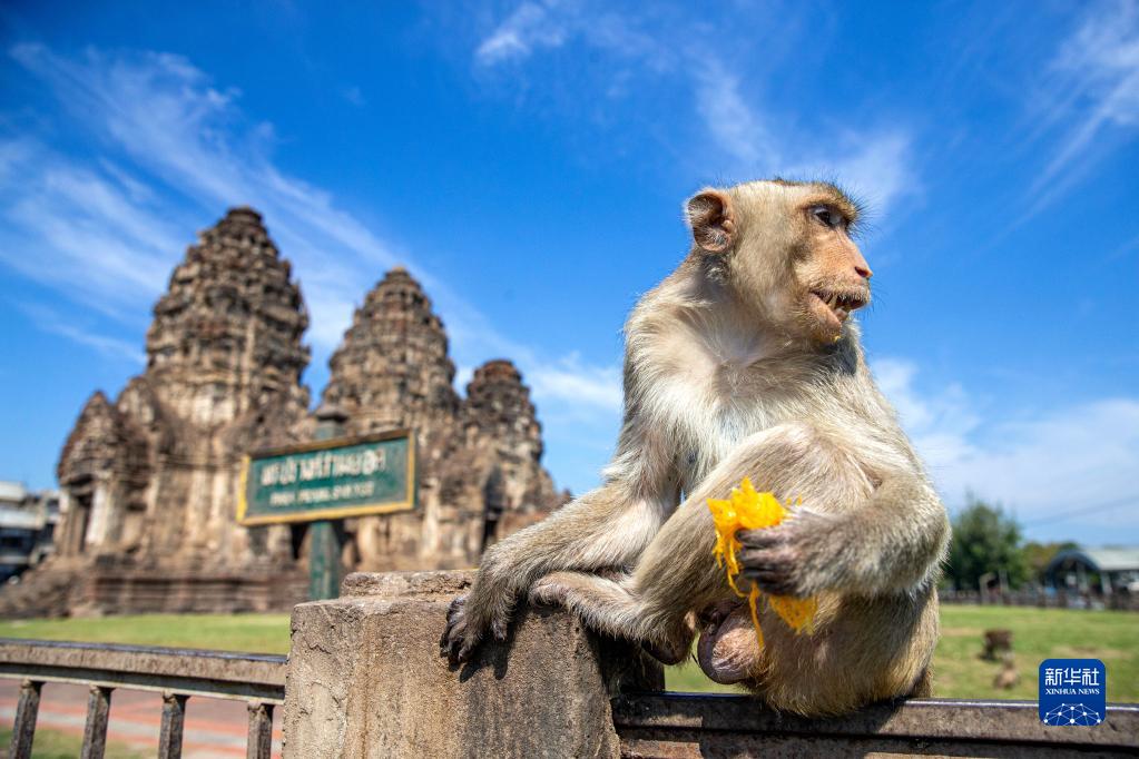11月28日,一只猴子在泰國華富里享用美食。