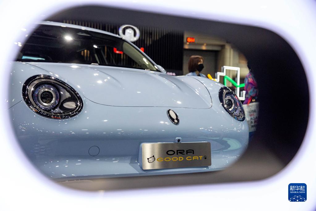 這是12月1日在泰國曼谷舉行的第38屆泰國國際車展上拍攝的歐拉好貓電動車。