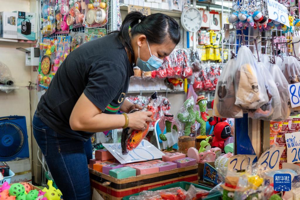 11月16日,紀淑練在泰國廊開的店鋪內整理商品。 新華社記者 林昊 攝