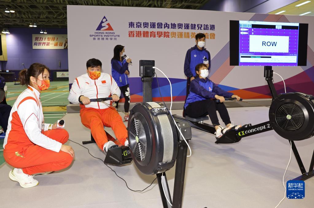 當日,內(nèi)地奧運健兒訪港代表團部分成員來到香港體院,參觀訓練設(shè)施并與香港運動員交流互動 。