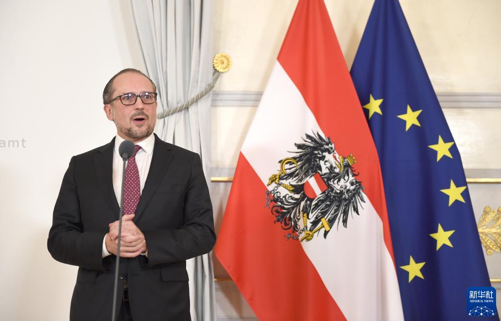 12月6日,在奧地利首都維也納,奧地利前總理沙倫貝格在總理交接儀式中致辭。 奧地利聯邦政府6日進行改組,卡爾·內哈默出任新總理。 新華社記者 郭晨 攝