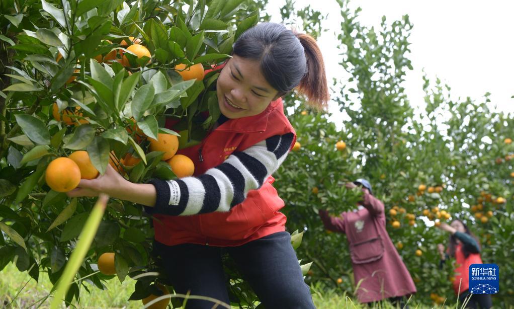 12月10日,村民和駐村干部在羅甸縣龍坪鎮(zhèn)頂訪村臍橙種植基地采摘臍橙。