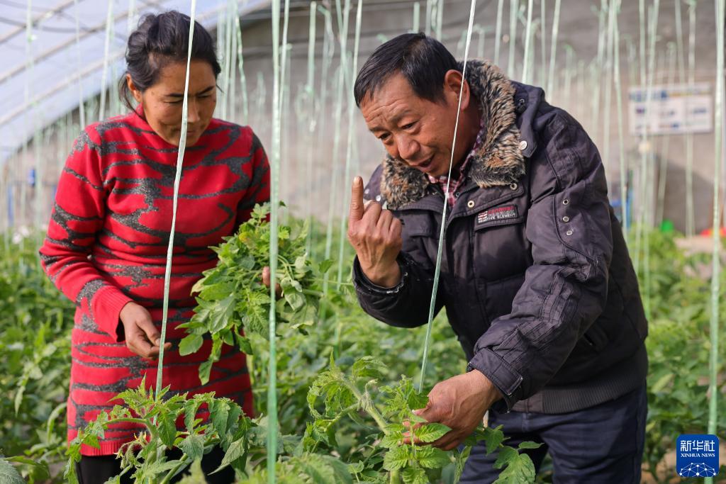 在新疆莎車縣戈壁產業園,農技人員(右)向農戶講解種植技術(12月12日攝)。
