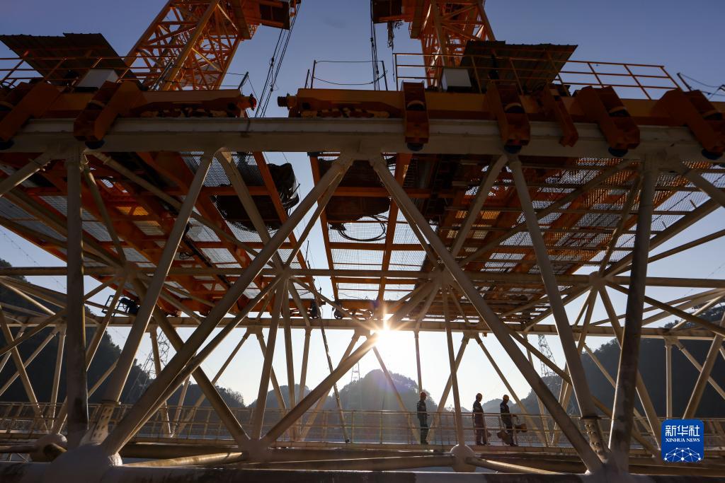 12月19日,工作人員從“中國(guó)天眼”的圈梁上經(jīng)過(維護(hù)保養(yǎng)期間攝)。